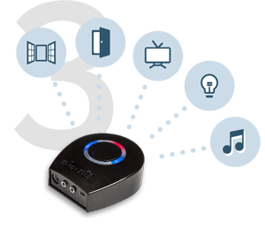 Housemate est un émetteur infrarouge et radio Z-WAVE qui permet de piloter un système domotique via une application smartphone iOS ou Android.