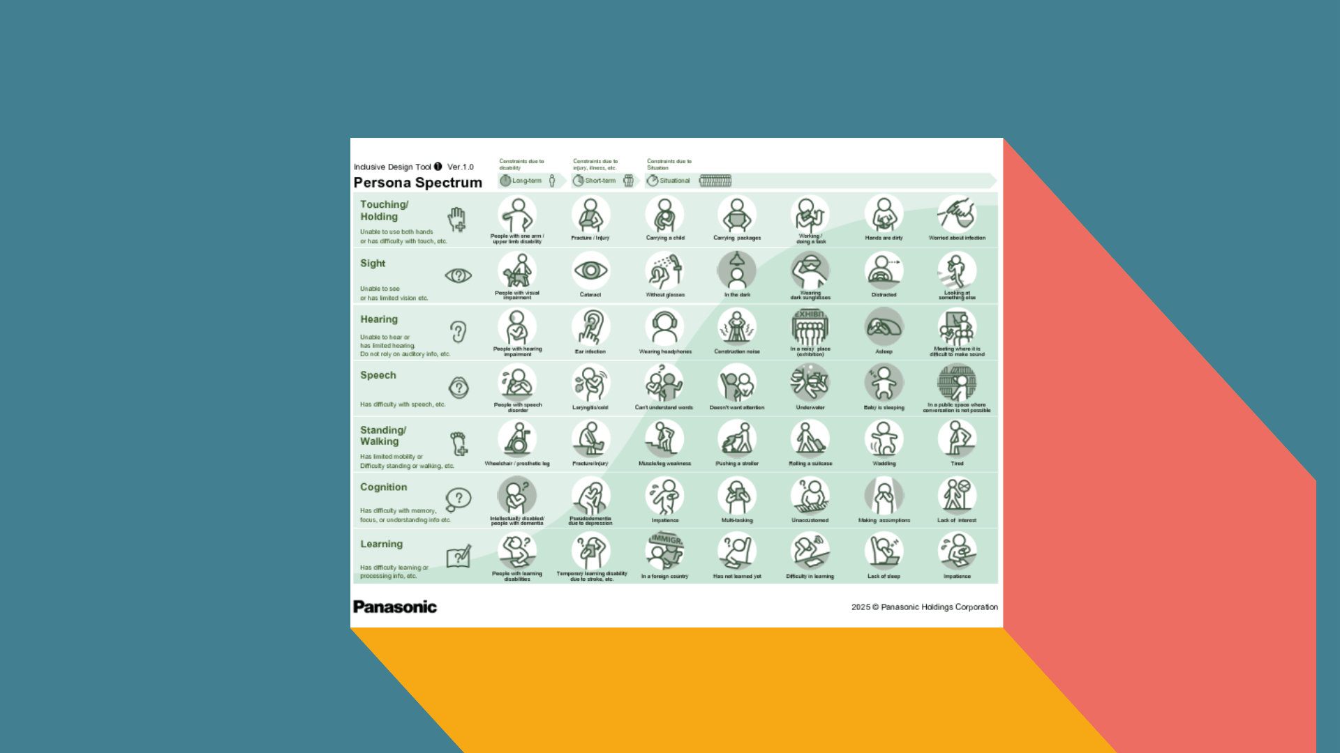 1/ Inclusive Design Worksheet À propos de l’outil Cette feuille de travail a été créée par Panasonic pour aider les équipes à élargir leur perspective